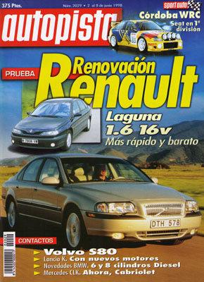 Contacto con el Volvo S80. Contacto con el Bentley Arnage. Prueba del Renault Laguna 1.6 16v RXE. Suplemento especial dedicado a los monovolumen Renault. Consultorio del lector. Contacto con el Lancia Kappa 2.0 Turbo y 2.4 JTD. Mercedes CLK Cabrio. Prueba del Nissan Patrol GR SE. Dinámica del automóvil. Jornada técnica BMW '98. Seat Córdoba Wordl Rally Car. 500 Millas de Indianápolis. Rallye de Sigüenza.