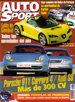 Prueba Comparativa: Porsche 911 Carrera 4 Tiptronic/Audi S8 Tiptronic. Prueba del Lancia Ypsilon 1.2 16v "Elefantino Rosso". Salón de Ginebra. Adrián Campos Motorsport. Circuito de Valencia: estado de las obras. Avance Rallye de Portugal. Dossier: fórmulas de promoción. Cart: avance temporada '99. Carrera de históricos en el Jarama. Prueba Racing del Hyundai Accent GT Gr.A.