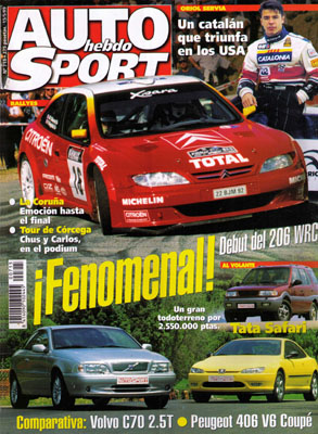 Prueba Comparativa: Volvo C70 2.5T/Peugeot 406 Coupé V6 "Pack". Prueba del Volkswagen Passat 2.5 V6 TDI Tiptronic. Al volante del Tata Safari 2.0 TDi. Al volante del Volkswagen Golf Variant. Oriol Seviá en USA. Rallye de Córcega. Rallye de Coruña. Circuito de la Comunidad Valenciana. Todas las pruebas reginales. Avance Alto Guadiato. Avance Jarama. Entrevista con Pedro Diego.