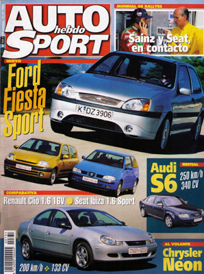 Al volante del Audi S6. Chrysler Neon. Nuevo Ford Fiesta. Mercado: Lancia Lybra. Prueba Comparativa: Seat Ibiza 1.6 Sport/Renault Clio 1.6 16v. Al volante del Skoda Octavia Combi 1.8 T Laurin&Klement. Al volante del Ford Focus ESP. Euro Open by Nissan: Donington, Fernando Alonso arrasa. Campeonato FIA GT. Carreras en Alcañiz. Mundial de Rallyes, fichajes 2000. Todas las pruebas regionales. Prueba Racing del Renault Mégane Gr.A de Piñón.
