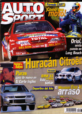 Los candidatos a "Coche deportivo del año" analizados por Luis Climent: ganador, el Mitsubishi Carisma EVO VI RS2. Al volante del Ford SVT F-150 Lightning. Al volante del Nissan Patrol GR. Rallye El Corte Inglés. Open Telefónica. Todas las pruebas regionales. Entrevista a Julián Vera. Nacional de Autocross. Prueba Racing: Seat Ibiza 1.8 20 VT "Copa".