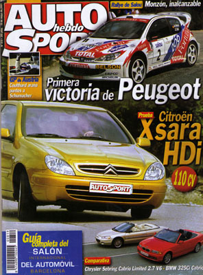 Avance del Salón del Automóvil de Barcelona. Al volante del Hyundai Trajet 2.0 CRDi. Prueba del Citroën Xsara HDi 110 VTS. Prueba Comparativa: Chrysler Sebring Cabrio Limited 2.7 V6/BMW 325Ci Cabrio. G.P. de Austria de F1. Rallye Salou. Open Telefónica Albacete. Todas las pruebas regionales.