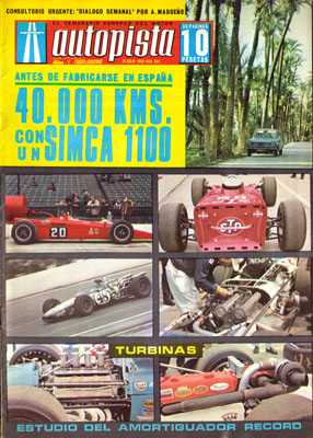 Turbinas 1968. El nuevo Volkswagen 1700. En diciembre, el Mini 1000. Pisando a tope con "Record", nuevo tipo de amortiguadores turismo-Rally. 40.000 km con el Simca 1100. 5º Rallye del Cid. Cómo son los vehículos de turismo especiales - Grupo 5. VII Trofeo RACE - I Rallye Internacional Camino de la Plata, lista de participantes.