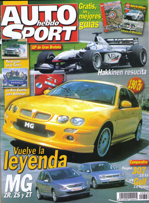 Al volante de los MG ZR, ZS y ZT. Prueba Comparativa: Peugeot 307 2.0 XS/Volkswagen Golf 2.0 Highline. Prueba del Mazda Xedos 9. Prueba del Toyota Previa D-4D. G.P. de Gran Bretaña de F1. Fórmula 1: Toyota Motorsport. Circuito Guadalope Alcañiz: guía del espectador. Baja España Aragón. Todas las pruebas regionales. Rallye de Alemania. Avance del Safari Rallye.