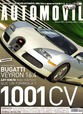 Prueba del Bugatti Veyron 16.4. Contactos: Ford Focus ST, Alfa Brera, Subaru Impreza WRX STI, Opel Astra OPC, Honda Civic, Audi Cabrio, Mazda MX5, Nissan Micra CC. Mundial de Rallyes: Córcega, España, Australia y temporada 2005. Campeonato de España de GT: Barcelona y temporada 2005. Clásicos: Tour de España.