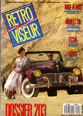 El primer número de esta mítica revista francesa. Chevrolet Corvette. La colección de Claude Dolléans. Prueba: Maserati Typo 63 Birdcage 1961. Auburn 8/51. Dossier: Peugeot 203. Prueba Comparativa: Jaguar XJS V12/Mercedes 450 SL. Catalogo-manía. El rincón del mecánico: los frenos. Los comienzos de Enzo Ferrari.