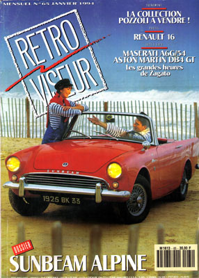 Muere Fernand Picard, padre del Renault 4/4. Se pone a la venta la colección de Serge Pozzoli. California, paraíso de los tractores. Cocéma-Gregoire. Charles Deutsch, 2ª época: la era de los DB Panhard. Perfil: Renault 16. Prueba: Panhard Dynamic C Junior de 1938. Dossier: Sunbeam Alpine. Prueba Comparativa: Aston Martin DB 4 GT de 1961/Maserati A6G 1954. Motos: BSA 750 Y13 de 1936. Técnica: el escape. Correo del lector.