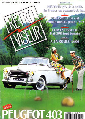 Lamborghini Club de France. Renault CE de 1911. Prueba: Ferves Ranger 4x4 de 1969. Historia: el estilismo de General Motors en 1959. Perfil: Alfa Romeo 2600. La colección de Georges Marin. Dossier: Peugeot 403. Hispano-Suiza H6B, J12 y K6. Moto: Kawasaki 650 WZ SS. Mecánica: las esferas del Citroën DS. Correo del lector.