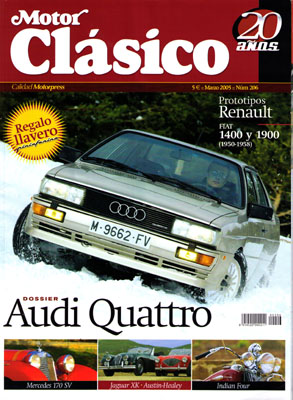 Dossier: Audi Quattro. Audi Sport Quattro. 11 años de Audi Quattro. Audi Sport Quattro S1. Presentación: Mercedes 170 VS. Comparativa: Austin Healey 100/Jaguar XK 140. Ayer y hoy: Fiat 1400/1900 (1950-1958). Expdientes secretos: prototipos Renault. Prueba: Indian Four. Pintura: eliminar desperfectos.