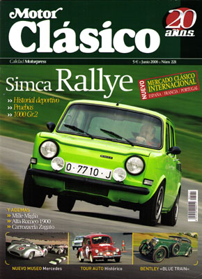 Dossier: Simca 1000 Rallye. Concurso de elegancia Villa d'Este. Nuevo museo Mercedes-Benz. Ayer y hoy: Zagato, símbolo de diseños excepcionales. Mille Miglia. Alfa Romeo 1900 (1950-1959). Jarno Saarinen. Eventos: Tour Auto. Bentley Speed Six "Blue Train". I Rallyestone.