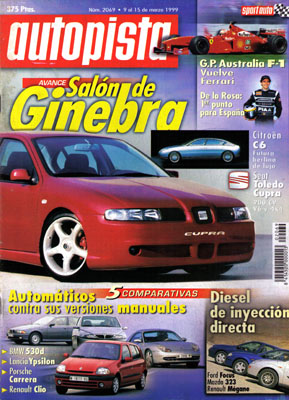 Prueba Comparativa: Ford Focus TDDI/Mazda 323 DiTD/Renault Megane 1.9 dTI. Retromóvil 99. Avance del Salón de Ginebra. Contacto con el Mitsubishi Montero GLS. Prueba del Mazda Demio 1.3 FE. Comparativa Manual-Automático: Lancia Y, Renault Clio, BMW 530D, Porsche 911 Carrera 4. Campeonato de España de Rallyes. G.P. de Australia de F1. Campeonato de España de GT.