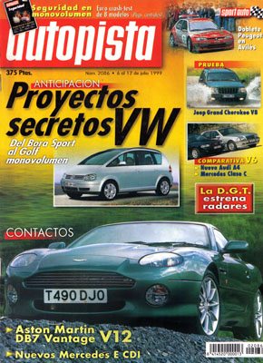 Proyectos secretos de VW. Contacto: Aston Martin DB7 Vantage, nuevos Mercedes Clase E. Prueba Comparativa: Mercedes C280/Audi A4 2.8 Quattro. La seguridad en los monovolúmenes. Prueba del Jeep Grand Cherokee 4.7 V8 Limited. Baja España Aragón. G.P. de Gran Bretaña. Rallye de Avilés. Albacete: Camiones y Citroën.