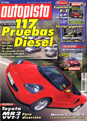 Prueba del Toyota MR2. IX Salón del Automóvil de Vigo. Contacto: Nissan Maxima QX. Dossier: los diesel del mercado. Guía del 44º G.P. de España de F1. Salón de Nueva York. Prueba del Mitsubishi Montero 3.2 DI-D GLS. Los túneles de la vergüenza. Cien años de Guías Michelin. Nuevos Volvo S40 y V40.