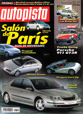 Novedades del Salón de París. Contacto: Toyota Prius, Hyundai Santa Fe, Cadillac Seville STS 2001. Prueba del Nissan Almera Tino 2.2 Di 16v. Prueba del Mitsubishi Carisma Evo VI Makinen Edition. Prueba Racing del Porsche 911 GT3R. Rallye Ciudad de Requena. Entrevista con Cesare Fiorio.
