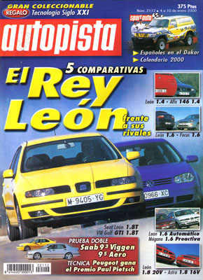 Prueba Comparativa Especial Seat León: Seat León 1.4 16v Stella/Alfa Romeo 146 1.4 TS - Seat León 1.6 Signo/Ford Focus 1.6 Trend - Seat León 1.8 20v Signo/Opel Astra 1.8 16v Elegance - Seat León 1.8T/VW Golf GTi 1.8T - Seat León 1.6 Signo Automático/Renault Megane Proactiva. Concept Cars de Honda y Subaru. Prueba Comparativa: Saab 9-3 Viggen/Saab 9-5 Aero. Modelismo: placer de Reyes. Publicidad centenaria Opel. Los españoles en el Dakar 2000.