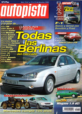 Salón de Bolonia. Las berlinas medias, frente a frente. Prueba del Renault Megane 1.9 dCI Dynamique. Prueba Comparativa: Opel Corsa 1.2 y 1.4. Nueva revolución industrial en el automóvil. Prueba del Audi A6 2.4 multitronic. Publi-reportaje: Motores Renault. Clásicos: un siglo de Mercedes. Prueba Racing: BMW X5 4.4 Tot Curse.