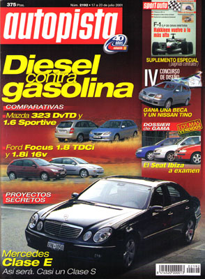 Prueba Comparativa: Ford Focus 1.8 16v/Focus 1.8 TDCi RS. Anticipación: nueva Clase E de Mercedes. G.P. de Gran Bretaña de F1. Baja España Aragón. Rallye de Zaragoza. Mazda Cup. Festival de la velocidad de Goodwood 2001. Le Mans Series: 1.000 km de Estoril. Dossier de gama: Seat Ibiza. Prueba Comparativa: Mazda 323 1.6/323 2.0 DVTD. Contacto: MG ZR, ZS y ZT.