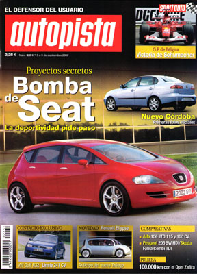 Nuevo Seat Córdoba. Anticipación: nuevo Seat León. Nuevos Smart Roadster y Roadster-Coupé. Nuevo Renault Ellypse. Prueba Comparativa: Peugeot 206 SW 2.0 HDi/Skoda Fabia Combi 1.9 TDI. Contacto: VW Golf R32. Prueba del Opel Omega 2.5 DTI Caravan. Prueba Comparativa: Alfa Romeo 156 1.9 JTD/156 2.4 JTD. Prueba de larga duración: Opel Zafira 1.8 16v. Contacto: Pontiac Solstice. Historia: 30 años de BMW Motorsport. Magazine: los cascos de la F1. G.P. de Bélgica de F1.