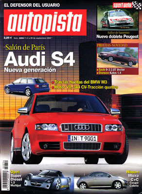 Presentación del Audi S4. Nuevo Nissan Micra. Nuevo Renault Clio V6. Opel Eco-Speedster. Prueba del Daewoo Kalos 1.4 SR. Contacto: Kia Carens. Prueba del Saab 9-3 2.0T Vector. Prueba del Renault Avantime 2.2 dCi. Prueba de larga duración del Seat Ibiza TDi 100 CV. Contacto: Aston Martin DB7 Vantage. Rallye de Teruel. Rallye Sanremo.