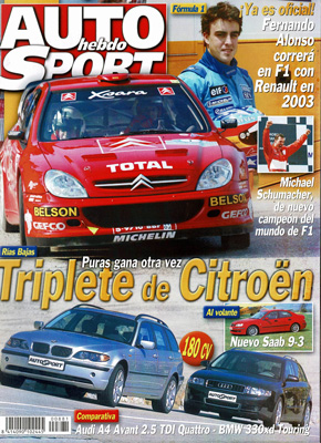 Al volante del Saab 9-3. Prueba Comparativa: Audi A4 Avant 2.5 TDi Quattro/BMW 330 XD Touring. Nuevo BMW 730d y 740d. Prueba del Ford Fiesta 1.6 Trend. Nuevo Renault Clio Sport S. Prueba del Peugeot 307 Break HDi 110 CV. Prueba del Audi A2 1.6 FSi. Baja España Aragón. G.P. de Francia de F1. Rallye Rías Bajas.