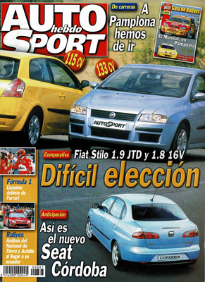 Fotos espía del Porsche Cayenne. Prueba Comparativa: Fiat Stilo 1.9 JTD/Stilo 1.8 16v Dynamic. Nuevo Seat Córdoba. Nuevo Renault Ellypse. Prueba del Peugeot 208 SW HDi. Prueba del Smart Crossblade. G.P. de Bélgica de F1. Guía del Rallye Vasco Navarro. Autocross en Arteixo. Nacional de asfalto y tierra.