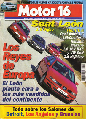 Salón de Detroit. Prueba Comparativa: Seat León 1.6 Signo/Opel Astra 1.6 16v Comfort/Renault Megane 1.6 16v RXE/Volkswagen Golf 1.6 Highline. Filatelia y automóvil. Salón de Los Angeles. Al volante de los nuevos Kia Joice y Sportage 2 puertas. Kawasaki ZX-12. El motor rotativo Markel. Grandes parques de proveedores en Cataluña y Valencia.