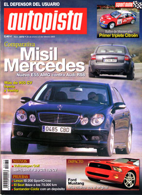 Nuevos Ford Mustang y Gama VW Golf 2003. Coche del Año 2003 en Europa. Prueba Comparativa: Audi RS6/Mercedes E55 AMG. Prueba de larga duración: Seat Ibiza TDI 100 CV. Prueba del Lexus IS 200 SportCross. Contacto con el Citroën Xsara Picasso 2.0i Aut. y C8 3.0i V6 Aut. Cursos de conducción para noveles.