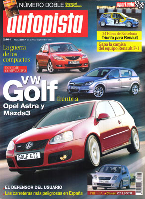 Prueba del Citroën C2 1.6 VTR. Informe Comparativo: Mazda 3/Opel Astra/VW Golf. Contacto: Saab 9-5 2004. Nuevo Opel Corsa 2004. Seguridad Vial: las carreteras más peligrosas. Técnica: soluciones seguras para el Volvo S40. Dossier Fernando Alonso: Sus inicios. 24 Horas de Barcelona. Campeonato de España de Rallyes de Tierra y de GT.