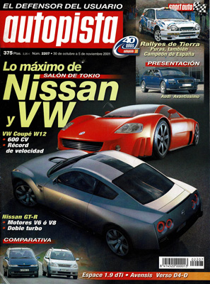 Salón de Tokio. Novedades: VW W12, Nissan GT-R, Ford Fiesta. Audi Avantissimo. Prueba Comparativa: Toyota Avensis Verso D4-D/Renault Espace 1.9 dTi. Prueba del Mazda MPV. Mayores al volante. Entrevista a Jesús Puras.