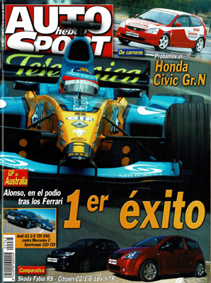 Salón de Ginebra. Prueba Comparativa: Citroën C2 1.6 16v VTR/Skoda Fabia RS TDI 130. Prueba Comparativa: Mercedes C Sportcoupé 220 CDi/Audi A3 2.0 TDi DSG. G.P. de Australia de F1. Rallyes: visita al equipo oficial de Fiat España. Prueba Racing: Honda Civic Type R Gr. N del Nacional de Asfalto.
