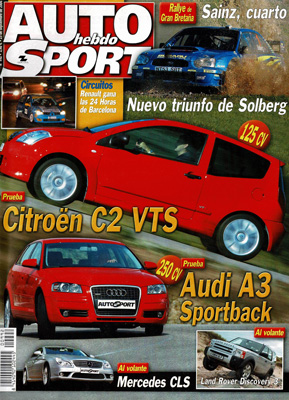 Prueba del Citroën C2 VTS. Prueba del Audi A3 Sportback 3.2 DSG. Nuevo Alfa Romeo 147 2004. Rally de Gran Bretaña. Subida a Valls d Andorra. Prueba del Fórmula Gloria. Avance Raid Montes de Cuenca.
