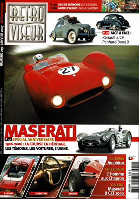 Gran Premio Histórico de Túnez. Prueba comparativa: Renault 4 CV/Panhard Dyna X. Descubrimiento: Amphicar. La colección de Pierre Verpeaux: sólo Citroën Chapron. Lugares de memoria: Circuito de Rouen-Les Essarts. Dossier: Maserati (1926-2006). Galería: Maserati 8 CLT de 1950. Guía de compra del Lancia Flaminia.