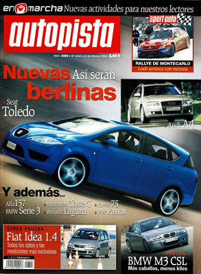Las berlinas que vienen. Prueba del Fiat Idea 1.4 16v. Contacto con el Seat Ibiza FR. Nuevo Mitsubishi Colt. Prueba del BMW M3 CSL. Prueba Racing del Hyundai Coupé Copa. Rallye de Montecarlo. Alonso rueda con el Renault.