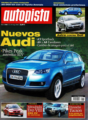 Prueba del Mitsubishi Lancer EVO VIII. Contacatos: Hyundai Tucson y Renault Mégane Scénic y Coupé Cabriolet 2.0 16v Turbo. Prueba del Opel Agila 1.3 CDTI. Prueba Comparativa: Opel Astra 1.6/Volkswagen Golf 1.6 FSI. Prueba Comparativa: Fiat Punto 1.9 Multijet/Opel Corsa 1.7 CDTi/Renault Clio 1.5 dCi/Seat Ibiza 1.9 TDI. Prueba de larga duranción con el Toyota Avensis. Clásicos: Tour Auto 2004. Rally de Tierra de Salamanca. Euroturismos. Avance de las 24 Horas de Le Mans.