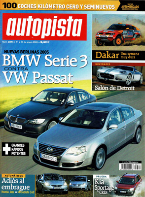 Prueba del Kia Sportage 2.0 Crdi Ex. Nuevos BMW Serie 3 y Volkswagen Passat. Prueba Comparativa: Mitsubishi Colt 1.5 16v Instyle/Honda Jazz 1.4i-DSI CVT Graphite. La Serie 5 de BMW se amplía. Salón de Detroit. Toyota F1: las armas de la nueva temporada.