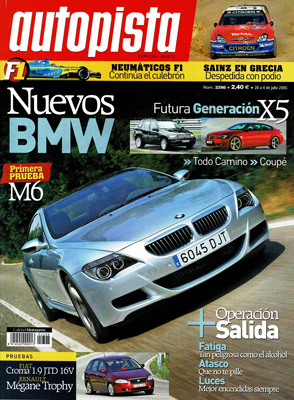 Prueba del BMW M6. Prueba del Fiat Croma 1.9 JTD. Prueba del Renault Mégane Sport Trophy. Futuros BMW. Contactos: Mazda MX-5, Mitsubishi Grandis 2.0 DI-D. Motor Volvo D5. Rallye Acrópolis. WTCC México. Rallye de Tierra de León. Rallye de Orense.