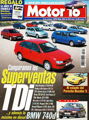 Prueba del BMW 740d. Prueba del Seat Córdoba TDi Stella 90 CV frente a sus rivales. Al volante del Porsche Boxster S. Prueba de la Volkswagen Caravelle 2.5 TDi. Magazin: veteranos en el aire. Ford Puma Kit Car. G.P. de Austria de F1.