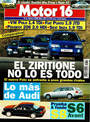 Prueba Comparativa: Volkswagen Polo 1.4 TDI/Fiat Punto 1.9 JTD/Peugeot 206 HDI 2.0/Seat Ibiza 1.9 TDi. Prueba del Audi S8 Quattro Tiptronic. Prueba del Audi S6 Avant. Novedades: Rover 45, Fiat Multipla Híbrido. Los coches de los mercados emergentes. Seat Ibiza de Rallyes. Jaguar Racing en F1. Al volante: Mitsubishi Montero, Hyundai Atos Prime.