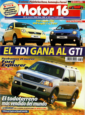 Prueba Comparativa: Volkswagen Lupo 1.4 16v/Volkswagen Lupo 1.4 TDI. Al volante del Pininfarina Rossa. Nuevo Ford Explorer. Ultimo adiós a José Luis Aznar. G.P. de la República Checa de Motos. Rallye de Finlandia.