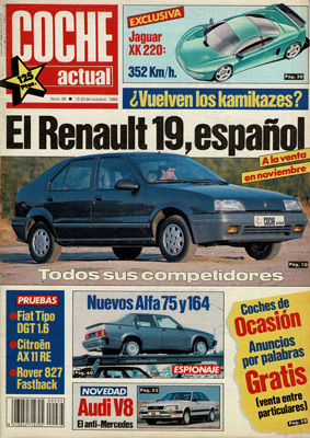 Prueba del Fiat Tipo DGT 1.6. Presentación del Renault 19. Ecos del Salón de París. Prueba del Citroën AX 11 RE. El coche de Morenito de Maracay. Proyecto Jaguar XK 220. Música con auriculares al volante. Prueba del Rover 827 Fastback. Nuevo Audi V8. Prueba de usado: Volkswagen Santana GX-5. Nuevos Alfa Romeo 75 y 164.