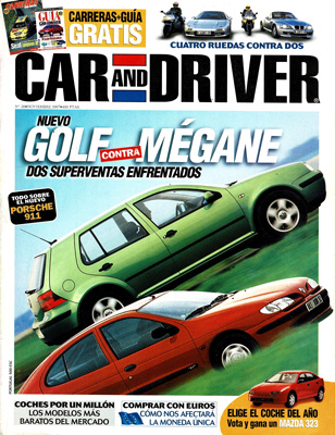 Premios CAR AND DRIVER, los candidatos. Contactos: Daewoo Nubira, Mazda 323, Skoda Octavia, Alfa Romeo 156, Porsche 911 Carrera 996, Mitsubishi Montero. Prueba Comparativa: Renault Mégane 1.6 RN/Volkswagen Golf 1.6 Conceptline. Los coches del millón. El automóvil y la moneda única. Teléfonos móviles, compañero de viaje. El coche en inverno. Coches contra motos: Honda NSX/BMW Z3 M/BMW K1200 RS/Honda VFR 750 F. Ruta 4x4: por los campos de los castillos en Mercedes G. Concurso de clásicos de Bagatelle. El coche de Abel Antón.