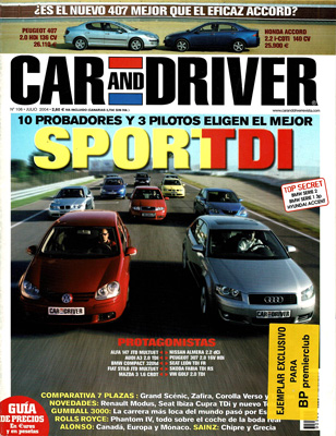 Salón del Automóvil de Madrid: Seat Toledo Prototipo, Renault Modus, X-Tamy, Yes Roadster. Contactos: Seat Ibiza Cupra, Toyota Carina. Prueba Comparativa: Volkswagen Touran 2.0 TDi/Renault Grand Scénic 1.9 dCi/Opel Zafira 2.2 DTi/Tollota Corolla Verso 2.0 D4-D. Prueba Comparativa: Peugeot 407 2.0 HDi/Honda Accord i-CTDi. Prueba Comparativa en circuito: Alfa Romeo 147 1.9 JTD/Audi A3 2.0 TDI/BMW Compact 320 td/Fiat Stilo 1.9 JTD/Mazda 3 1.6 CRTD/Nissan Almera 2.2 DCi/Peugeot 307 HDi/Seat León 1.9 TDi FR/Skoda Fabia 1.9 TDI RS/Volkswagen Golf 2.0 TDi. Gum Ball 3000, 75.000€ en multas. De ruta por Extremadura en un Range Rover 3.0 TD6. Nostalgia: Rolls-Royce Phantom IV Cabriolet 4AF18 de la Casa Real. Consultorio. G.P. de España de F1. G.P. de Europa de F1. G.P. de Mónaco de F1. Rallye Acrópolis. Rallye de Chipre.