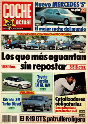 Prueba del Toyota Corolla 1.6 GL 16v. Contacto con el Opel Calibra y el Alfa Romeo 164 Quadrifoglio. Prueba del Consumo: Alfa Romeo 164 TD/Audi 100 TDi/Citroën XM TD/Fiat Croma TD i.d. Renault 19, patrullero ligero. Prueba del Citroën XM Turbo Diesel. Prueba de la Honda XR 600R. El mercado de los deportivos japoneses (I). Consultorio. Las rutas del verano, paso a paso.