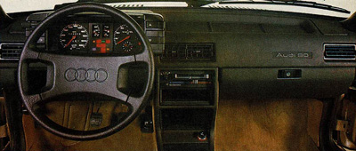 En cuanto a las suspensiones, independiente a las cuatro ruedas, con un tradicional sistema McPherson delantero y un eje de torsión semi rígido trasero, tan del gusto alemán. Para compensar los posibles movimientos parásitos del eje posterior se recurre a una barra diagonal -tipo Panhard-, tan conocida en nuestro país por los usuarios de los Seat 124 y 131 y que en aquellos modelos han dado tantos quebraderos de cabeza en utilización rápida. Habría que someter a una prueba de larga duración al modelo para ver la calidad de los anclajes, pero estamos seguros, conociendo la meticulosidad de los técnicos de Audi, que no va a plantear problemas en los 90. Bien calzado, con unos neumáticos de perfil 60 y llanta de 14 pulgadas, el coche pisa con enorme seguridad la carretera, como analizaremos en el apartado siguiente.