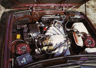 Posición: Delantero longitudinal inclinado. Número de cilindros: Seis, en línea. Material culata: Aleación ligera. Material bloque: Fundición. Ventilador: Eléctrico. Diámetro/Carrera: 80 x 66 cm. Cilindrada: 1.991 c.c. Relación de compresión: 9,8 a 1. Árbol de levas: Uno, en cabeza. Apoyos cigüeñal: Cinco. Válvulas: En culata, en V a 44°. Mando árbol: Correa dentada. Alimentación: Inyección electrónica Bosch L-Jetronic. Lubricación: Aceite, bomba de engránales. Potencia máxima: 125 CV. a 5.800 r. p. m. Par máximo: 17,3 mkg. a 4.000 r. p. m. Encendido: Electrónico transistorizado.
