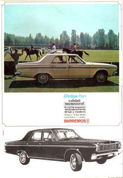 La primera impresión que produce el “Dodge Dart Barreiros” es la de la solidez. Inmediatamente, el usuario se ha percatado, a los pocos kilómetros de guiarlo, de su gran confortabilidad. Después se van experimentando una cascada ininterrumpida de sensaciones agradables que todavía perduran al abandonar el coche.