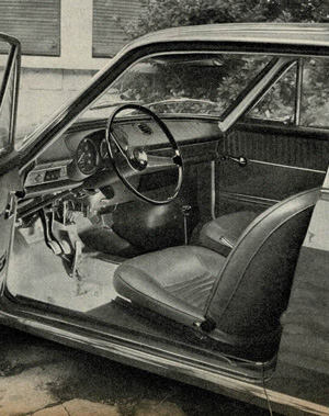Estos dos coches eran sin duda interesantes desde muchos puntos de vista, y si esperamos casi nueve meses antes de someter el coupé a una de nuestras pruebas exhaustivas, fue simplemente porque aún no estaba disponible en Francia. Ahora que se ofrece en nuestro mercado, lo condujimos en Montlhéry y en carretera durante un tiempo considerable para formarnos una opinión clara. Pero, ¿qué es exactamente este coupé? Un coche pequeño muy bonito, con una parte trasera truncada, cuya silueta es generalmente admirada por todos. Mecánicamente, este modelo utiliza los mismos componentes básicos que el sedán 850. Si bien la cilindrada del motor es la misma en ambos modelos, la potencia difiere significativamente. El coupé produce 52 CV SAE a 6200 rpm, en comparación con los 42 CV del sedán. Este aumento se logra mediante una mayor relación de compresión, un carburador de doble cuerpo y un colector de escape especial.