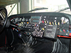 El panel es sencillo, únicamente lleva los elementos necesarios e imprescindibles; destaca el cuenta revoluciones de gran tamaño y el cronómetro electrónico digital de lectura directa, sin agujas y que tiene además muchas otras particularidades largas de enumerar; situado en el extremo derecho del tablier junto a un Halda muy sencillo y los diversos interruptores para faros, faros adicionales, palanca de accionamiento del limpiaparabrisas con botón incrustado para salpicar agua, etc. Los asientos de marca Ferrero están construidos por medio de moldes a la medida de cada piloto. La palanca de cambio es larga, para facilitar así su manejo. Detrás de los asientos, al igual que en los Seat oficiales se encuentra una caja de madera para depositar los cascos. La barra antivuelco integral apenas se percibe debido a su estrechez, y el flexo está fijo a la puerta del copiloto.
