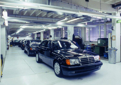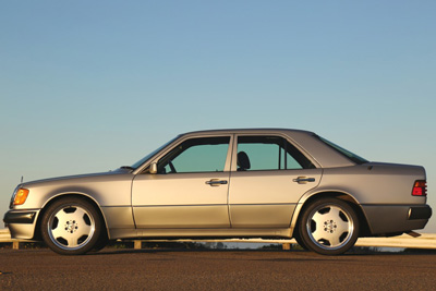Por lo demás, el coche es un monumento a la tecnología automovilística aplicada a la alta prestación, sin renunciar al confort, del mismo modo que en la Clase S se busca lo mismo, pero invirtiendo el orden de prioridades. Tal y como ya se explicó en su momento, el 500 E está fabricado al alimón entre Mercedes y Porsche, con un curioso vaivén de la carrocería entre las factorías de Sindelfingen y Zuffenhausen. Partiendo de la base de un 300 E, por la parte de fuera se estampan las cuatro aletas con pasos ensanchados, y hacia dentro, se retoca el vano motor para alojar el V8 y sus escapes, y el túnel, para hacer hueco a los voluminosos catalizadores. Frenos, dirección y elementos de suspensión reforzados están tomados del 500 SL; los nuevos muelles, algo más duros y de características similares a la versión especial Sport-Line, hacen bajar la suspensión 30 mm, lo que unido a los 37 mm de ensanchamiento de vías hacen que la resistencia al vuelco se incremente de modo espectacular, tanto más que, en cuestión de ángulo de caída negativa, no se han andado por las ramas: —1 0 30' delante y —2 o 30' detrás.
