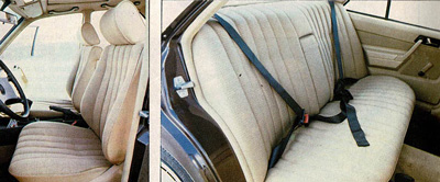 En el confort sin blanduras, o sea, al estilo alemán, los excelentes asientos juegan una vez más un papel preponderante. En ellos, son de evitar las veleidades de tapicería, porque el simple terciopelo supone ya un sobreprecio de 235000 pesetas. Pero quizás más de uno se vea tentado, porque si bien la discreción de decoración y casi total ausencia de cromados van muy bien exteriormente con la elegante línea, por dentro el tono general resulta quizás demasiado austero, sobre todo para la clientela que aprecie más lo “señorial” que lo “deportivo”. Eso sí, la instrumentación es bastante completa, así como el equipo de iluminación. Otro cantar es el sistema de limpiaparabrisas, donde si sería de agradecer la opción de una segunda raqueta. La modalidad de una sola raqueta parecerá muy futurista, y combina bien con la supresión de ruidos aerodinámicos, pero siempre deja un ángulo superior izquierdo sin barrer, además de que, a altas velocidades apenas llega a evacuar el agua por más que se afane de un lado a otro del cristal.